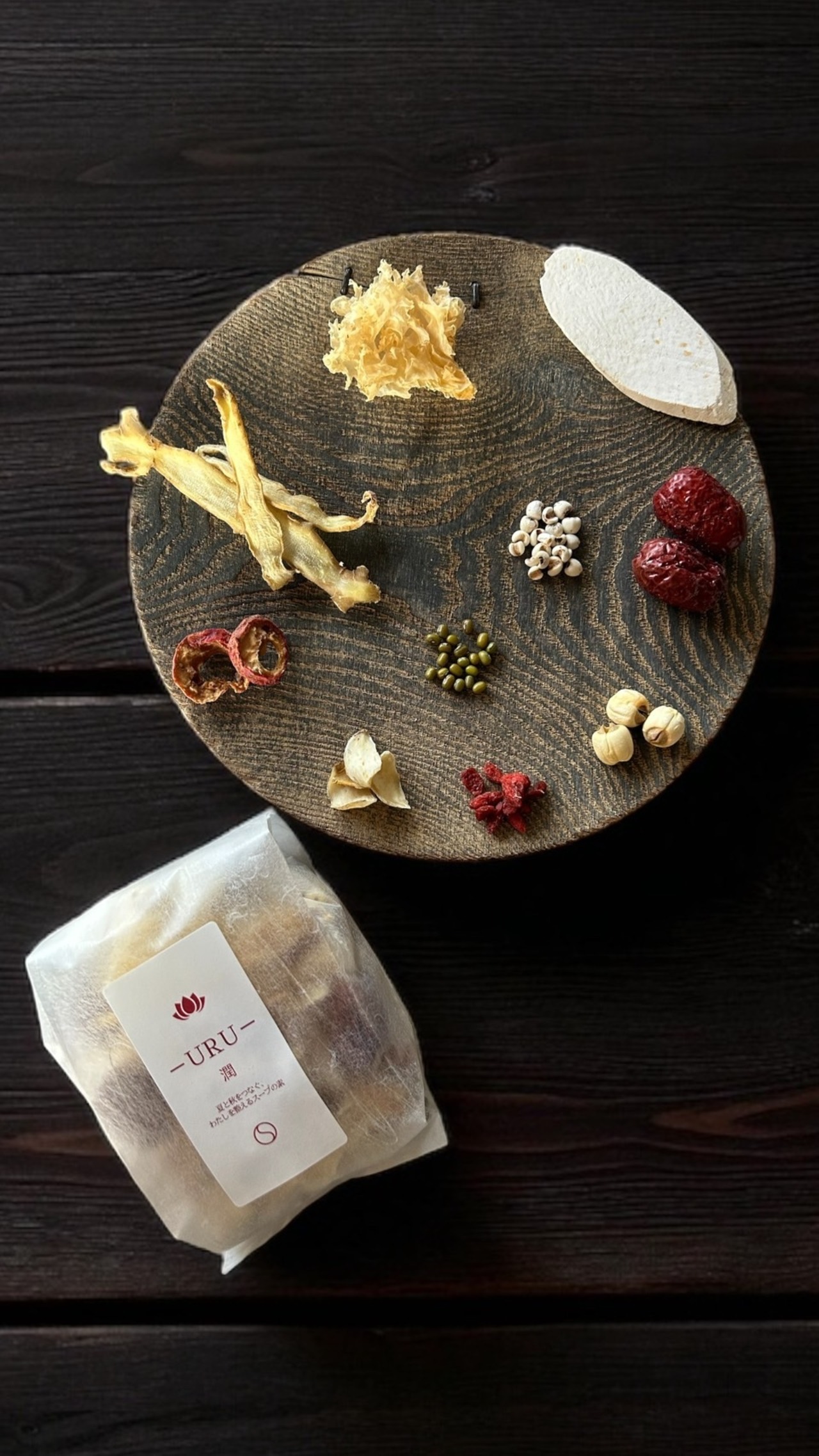 ハトムギ(国産)、緑豆、棗、白きくらげ、淮山(やまいも)、玉竹、百合根、蓮の実、山査子、枸杞の実